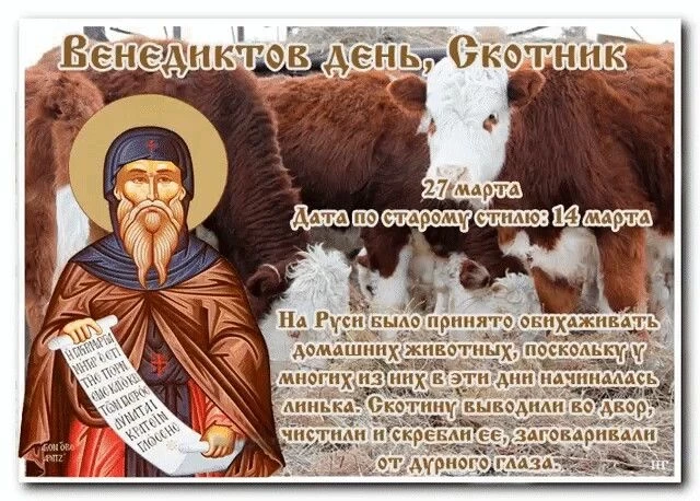 День Святого Венедикта или Фёдора-скотника отмечается 27 марта 2025 года