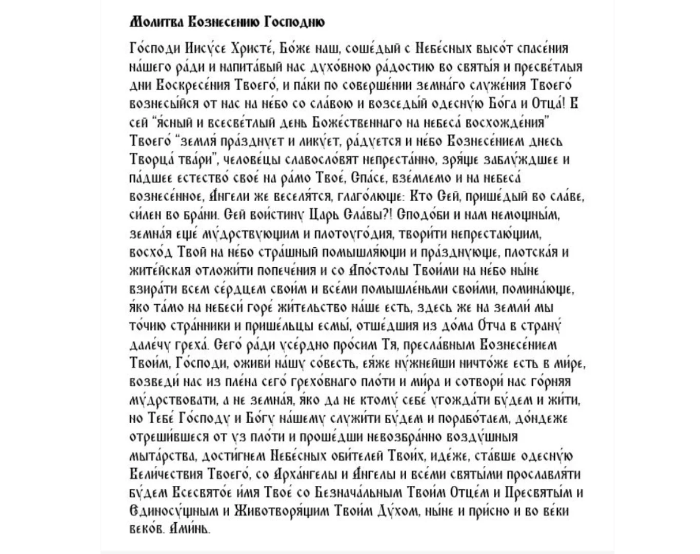 Молитву следует произносить у иконы «Вознесение Господне», в этот день она обладает мощной силой.