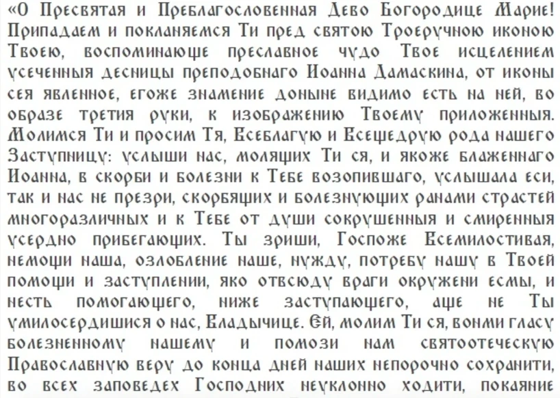 Молитва в церковный праздник иконы Богородицы «Троеручица»