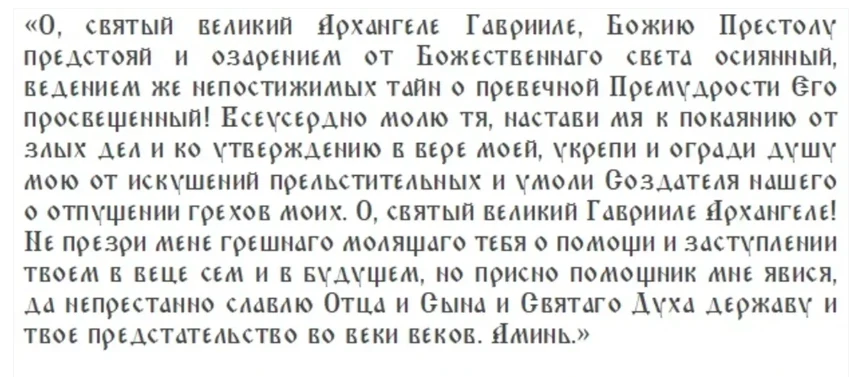 Молитва в церковный праздник Собор Архангела Гавриила 26 июля