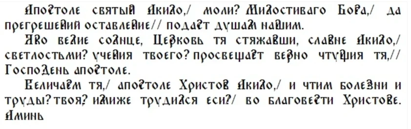 Молитва в церковный праздник апостола от 70 Акилы Гераклейского