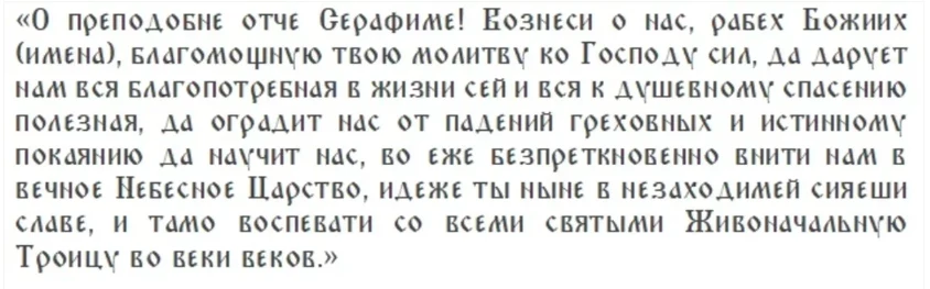 В этот день принято обращаться к святому Серафиму с просьбами о духовном просветлении, исцелении от болезней и укреплении веры. Особую силу имеет молитва, произнесённая на восходе солнца или во время посещения храма.