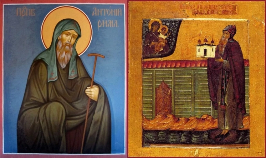 После смерти родителей Антоний отдал всё своё наследство бедным и отправился в монастырь, полностью посвятив себя духовной жизни. Позже, спасаясь от гонений, он молился на скале у моря. Согласно легенде, скала отломилась, и святой оказался в Новгороде, где основал монастырь, который стал центром духовного образования и молитвы.