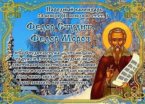 Приметы на Федора Студита, отмечаемого 24 ноября