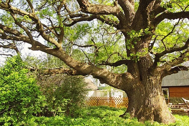 Дуб — мощное дерево с широкой кроной, которое поглощает углекислый газ и дает тень. Но из-за своих размеров (до 40 метров в высоту и 24 в ширину) он не подходит для небольших участков. Корни дуба могут разрушать покрытия и строения, а уборка листьев и желудей — настоящее испытание.
