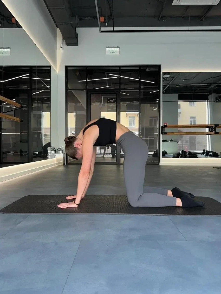 Оставаясь на четвереньках, начните двигаться плавно: потянитесь боком, нарисуйте корпусом круг, почувствуйте движение каждого сегмента позвоночника. Дышите спокойно, не спешите.