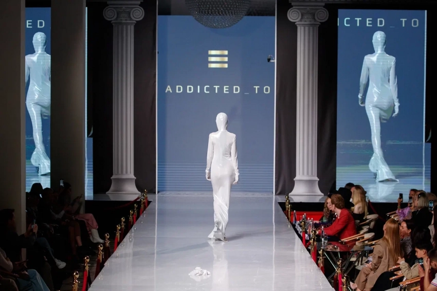 Неделю моды открыл показ российского бренда ADDICTED_TO с коллекцией, вдохновленной путешествием на зимний Байкал. Лед и золото, минимализм и роскошь - основная тема этой творческой работы. «Мы словно высадились на Луну», - так описал путешествие дизайнер. В основу коллекции легли суть и форма материи. Материалы, используемые в коллекции, лучше всего раскрываются в динамике - блестящие и переливающиеся текстуры, плотные как лёд или текучие как жидкое золото, гипертрофированные архитектурные формы или облегающие как вторая кожа силуэты. Все это вдохновение от космического вида зимнего Байкала с его ослепительным льдом и сияющей поверхностью.