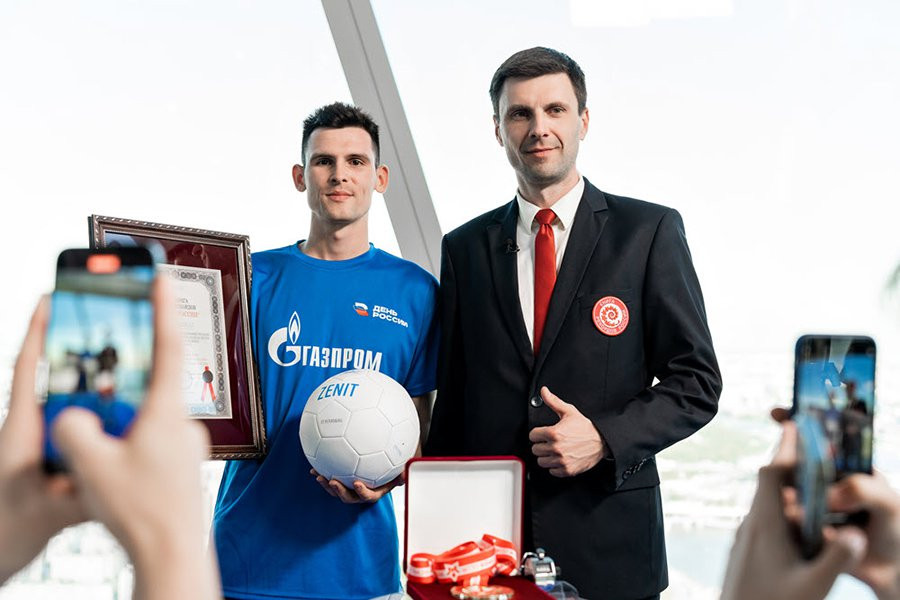 Футболист поднялся по лестнице на 83 этаж с мячом на шее и набил его 1203 раза, тем самым установив новый мировой рекорд по наибольшему количеству чеканки футбольного мяча на высоте более 300 метров в здании «Лахта Центра» — второго по высоте здания в Европе после Останкинской телебашни, сообщает pronline.ru.