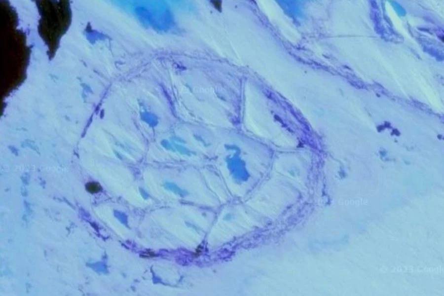 Эти контуры неких подлёдных объектов стали видны в последнее время на фоне роста температур и в этом регионе мира. Самое загадочное даже не в очертаниях самих этих объектов, а то, что под ними выявлена подземная полость, имеющая глубину около 300 метров.